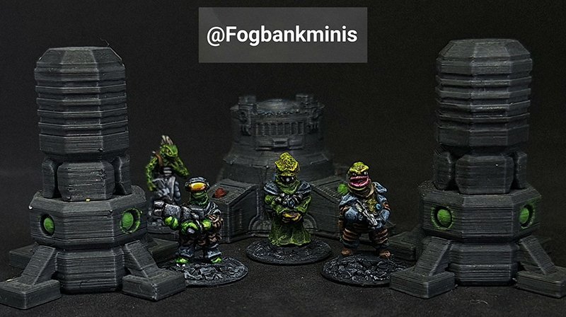 The infantry in these pictures are above at the rear an Ikwen with Assault Rifle (RAP47) by Loud Ninja Games and then front row from left to right SHM30 Gizbin Mercenary, an SHM62 Varlish Envoy (below larger too) and lastly SHM28 Trandan Mercenary also below larger too. Loads of unique aliens in the SHM Range.