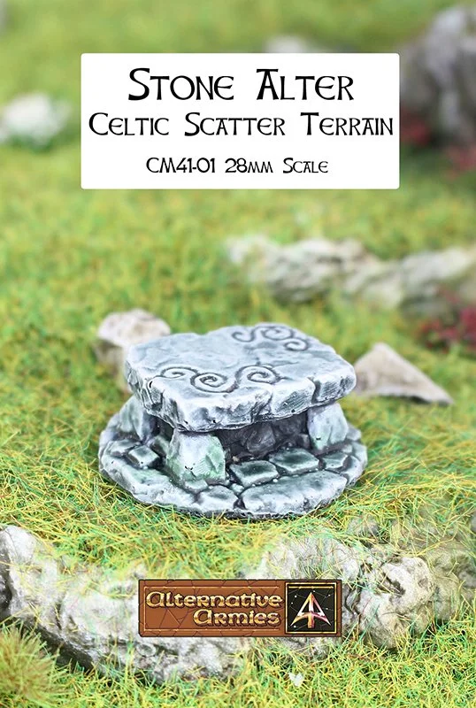 CM41-01 Celtic Stone Alter: This one piece resin model is 30mm long, 20mm wide and 17mm tall. Every Druid should have one!