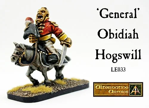Alternative Armies has an extensive range of Limited Edition Miniatures giving you generals, characters, monarches, oddies and more in runs of 1000 or 250 numbered packs. Above is LE033 General Obidiah Hogswill on Donkey a mounted version of the foot miniature in 5006 Obidiahs Army for example.